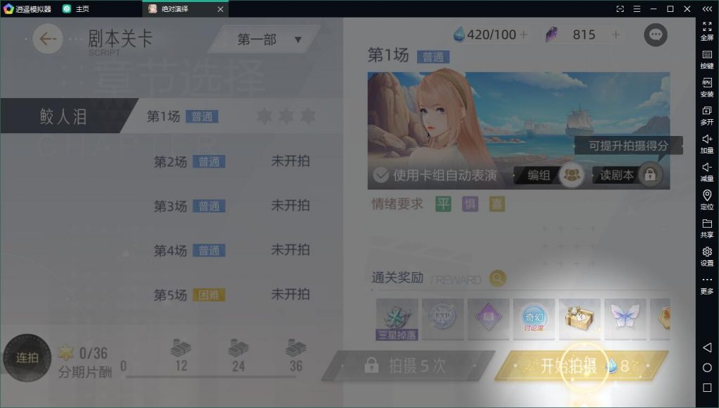 現(xiàn)在可以直接在電腦上玩絕對(duì)演繹電腦版,賬號(hào)和手機(jī)是互通的。只需要使用逍遙模擬器即可,流暢無卡頓,很適合玩絕對(duì)演繹這種女性向養(yǎng)成游戲。