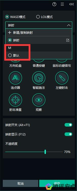 4、如果對(duì)自己的設(shè)置不滿意,想要切換為原來(lái)默認(rèn)的按鍵映射,在同樣的地方點(diǎn)開下拉框,勾選“默認(rèn)”就可以了。
