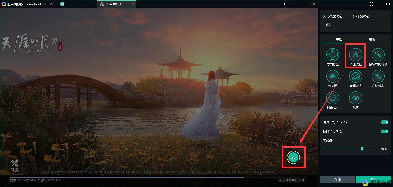 把點擊鍵拖拽到游戲對應界面,可以設置攻擊、打開背包等功能。