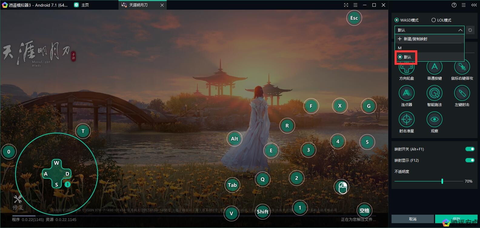 4、如果對自己的設置不滿意,想要切換為原來默認的按鍵映射,在同樣的地方點開下拉框,勾選“默認”就可以了。