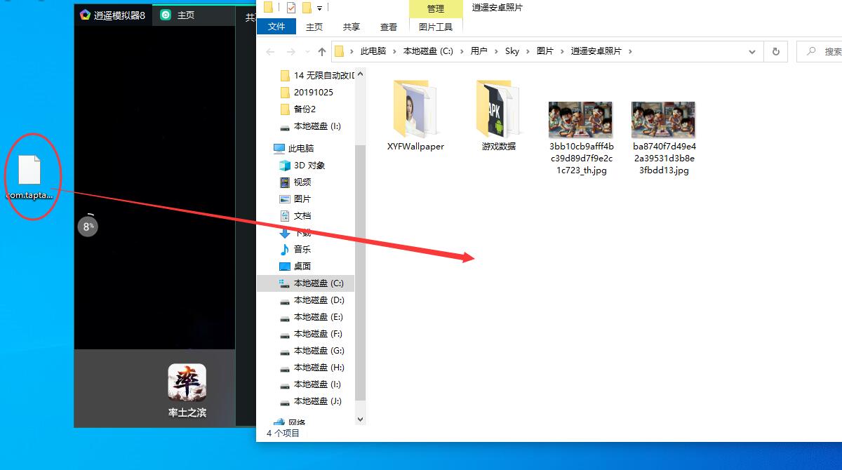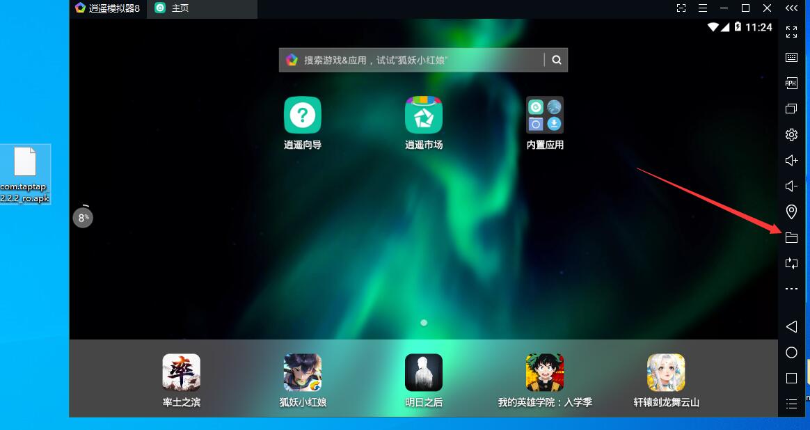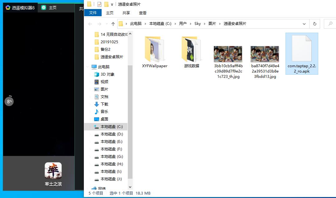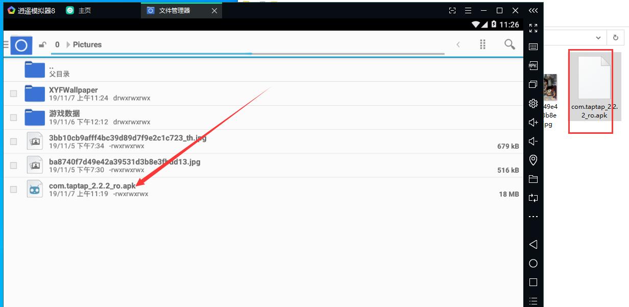 1.例如安裝 左邊 com.taptap_2.2.2_ro.apk文件 打開 模擬器右邊欄 共享文件夾