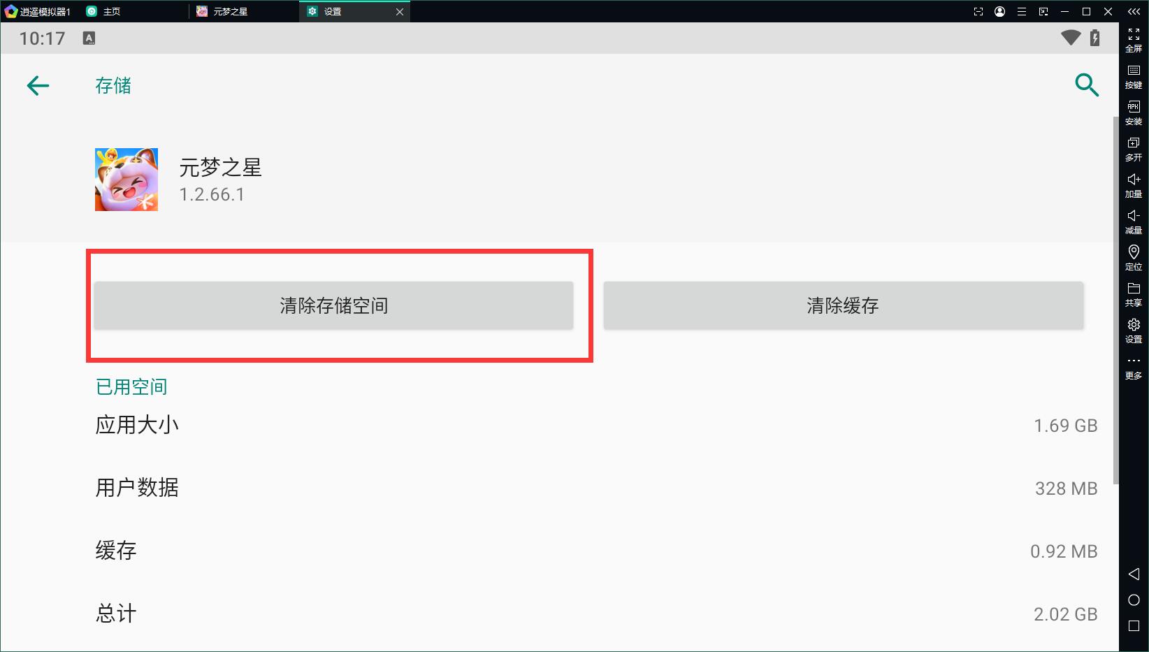 2、點(diǎn)擊存儲(chǔ),清除存儲(chǔ)空間,再進(jìn)入游戲即可。如果還不行的話就在多開(kāi)器里新建一個(gè)鏡像嘗試~