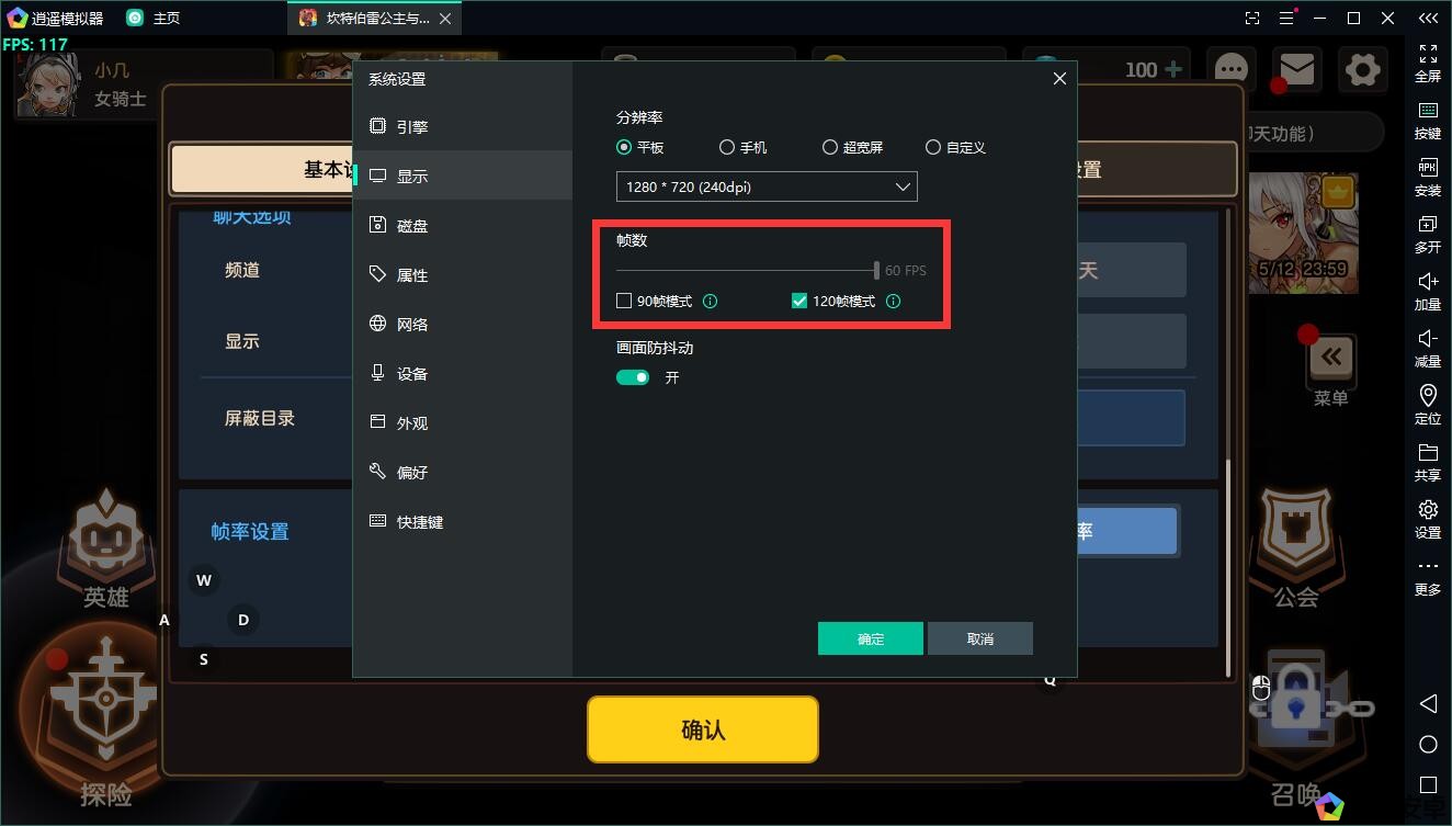 坎公騎冠劍開啟120幀方法 一月 16, 2024 二月 21, 2024 1、打開模擬器右側(cè)側(cè)邊欄“設(shè)置”,在“顯示”中選擇“120幀”模式,點擊確定之后重啟模擬器。2、進入游戲,點開設(shè)置界面,選擇“基本設(shè)置”,下拉把幀率設(shè)置修改為“高幀率”即可。