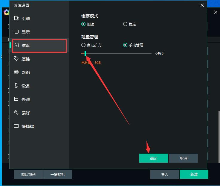 2.磁盤 選擇手動管理 根據(jù)自己需要 大小拖動滑動條 確定即可