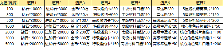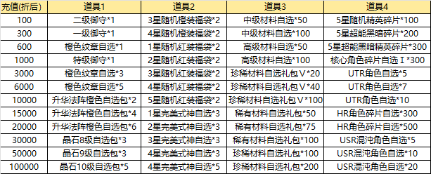 活動說明:單角色長期累計充值達到相應(yīng)額度都可以獲得對應(yīng)的返利,達到高檔位可同時領(lǐng)取低檔位獎勵,每個玩家每檔僅限領(lǐng)取一次。