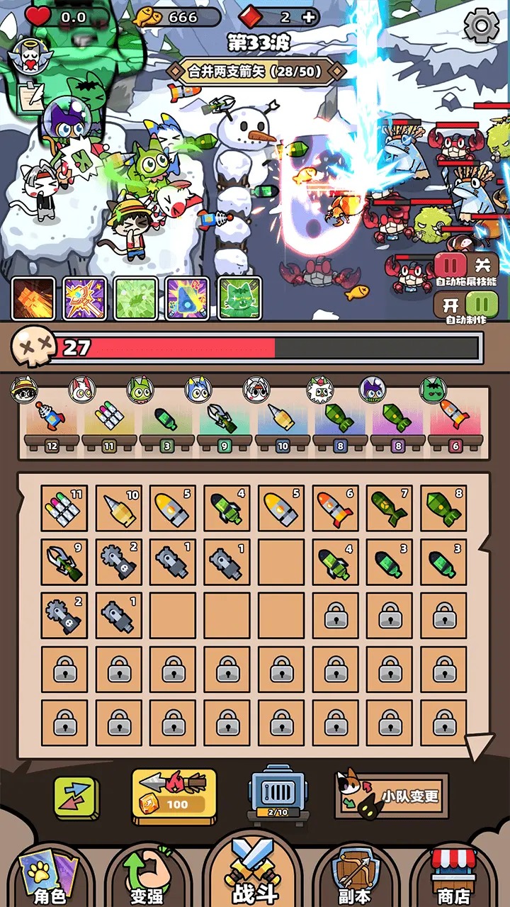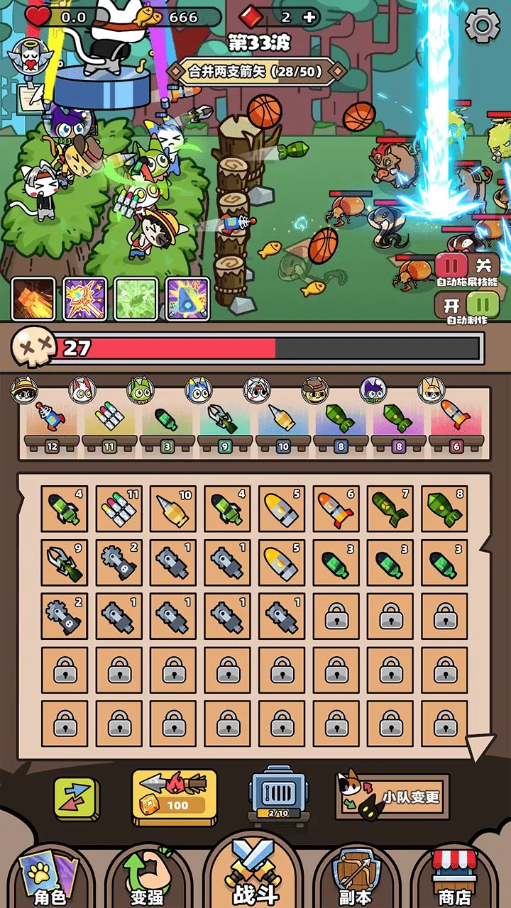 【合成升級】收集材料合成強力武器,從激光逗貓棒到超級魚干炮,通過合成升級強化裝備,讓貓咪們火力全開,碾壓鼠群!