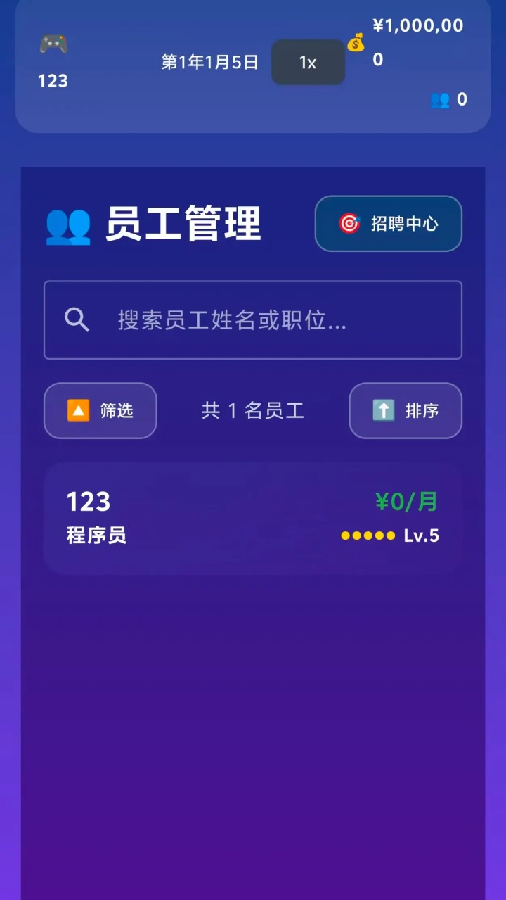 核心玩法:從初始資金起步,招募程序、策劃等六類員工,按技能與薪資組建團(tuán)隊(duì)。確定游戲類型、主題、平臺(tái)及規(guī)模后推進(jìn)開(kāi)發(fā),同步開(kāi)展?fàn)I銷。發(fā)布后依評(píng)測(cè)與銷量擴(kuò)張,終登行業(yè)。